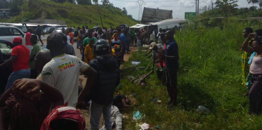 Selon le constat fait par un de nos reporters sur place, l’éclatement d’un pneu du bus transportant des passagers serait à l’origine de l’accident. Le véhicule, en provenance de Ntoum, aurait ensuite percuté un camion abandonné en bordure de route. Dix personnes ont perdu la vie sur place.
