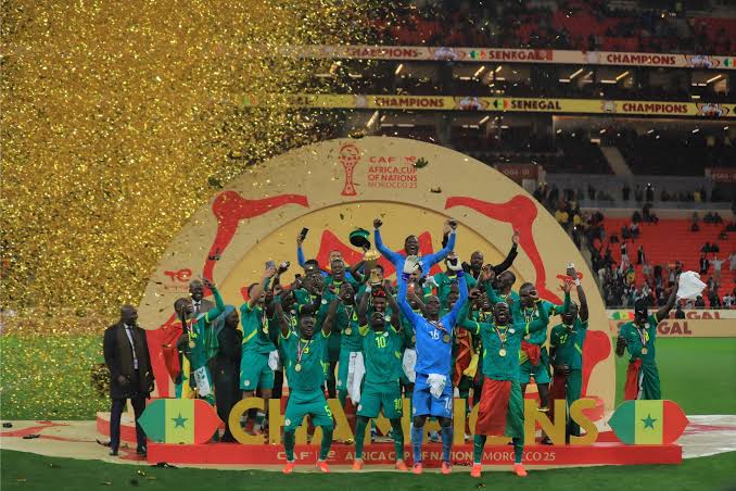 L’équipe du Sénégal champion d’Afrique , soulevant le trophée Credit:© 2026 D.R./Le Radar