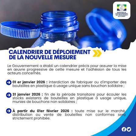 Depuis février 2026, toute mise sur le marché, distribution ou vente de bouteilles en plastique non conformes est strictement interdite au Gabon. Cette mesure avait été annoncée par le gouvernement en 2025 dans le cadre de sa politique de lutte contre la pollution plastique.
