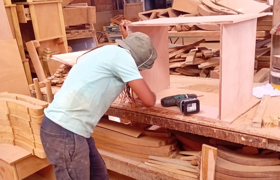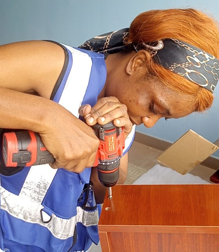 Menuisière-ébéniste de formation, Gyrielle Kogou Boukinda exerce depuis deux ans. Elle a fait ses débuts à La Maison du Meuble, où elle travaillait sur la fabrication de mobilier classique : chaises, tables, lits ou encore bureaux. Depuis un mois, elle a rejoint l’entreprise Casep-Ga à Libreville, où elle s’est spécialisée dans la menuiserie funéraire, un domaine aussi technique que sensible.