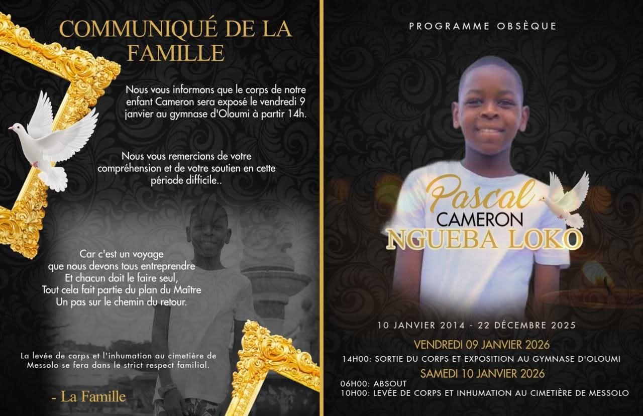 Libreville a rendu, ce vendredi 9 janvier, un dernier hommage au jeune Pascal Cameron Ngueba Loko, âgé de 13 ans, décédé le 22 décembre 2025 dans des circonstances troubles.