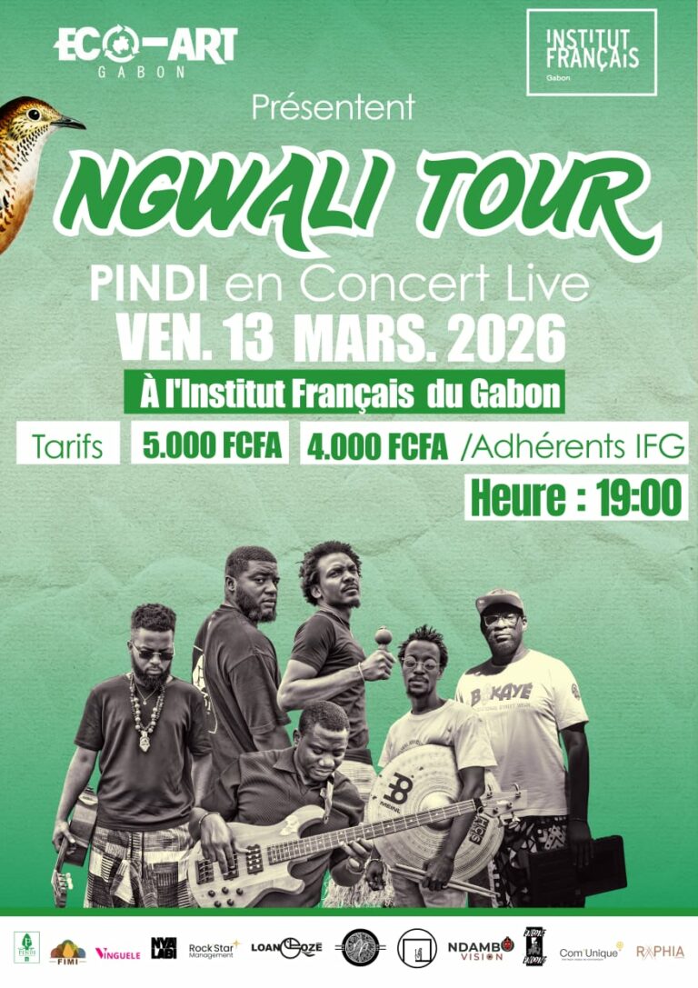 Dans le cadre du « Ngwali Tour 2026 », le groupe PINDI se produira en concert ce vendredi 13 mars 2026 à l’Institut français du Gabon (IFG), à partir de 19 heures. Les billets sont proposés à 5 000 FCFA et à 4 000 FCFA pour les adhérents de l’IFG.