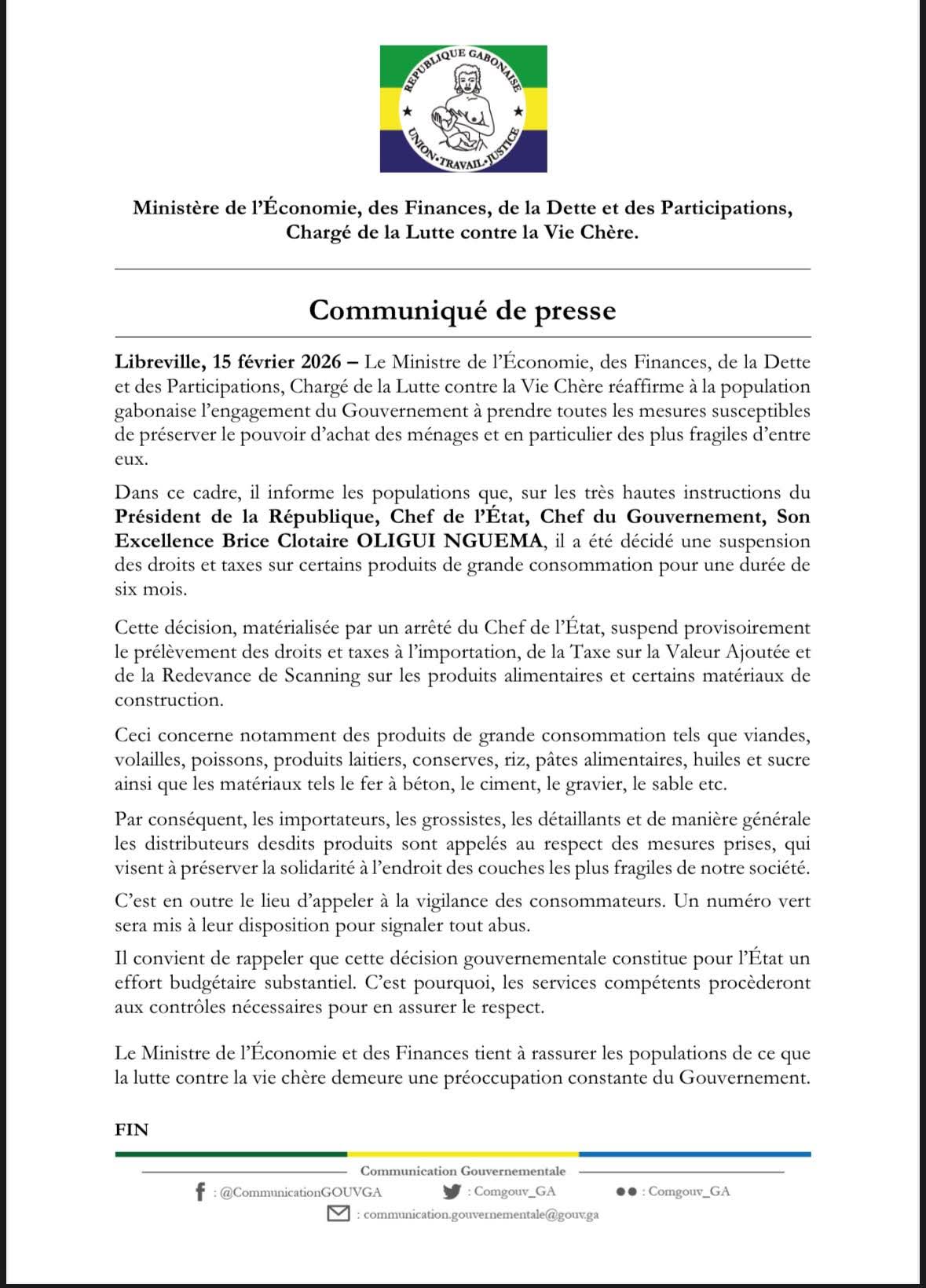 Au-delà de son impact économique, cette décision possède une dimension sociale et politique importante. La lutte contre la vie chère est un sujet sensible au Gabon, régulièrement au cœur des préoccupations citoyennes. En agissant sur les produits alimentaires et les matériaux de construction, le gouvernement cible à la fois la consommation quotidienne et le coût du logement.